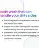 • Gel de ducha de rápida espuma y enjuague limpio con limpiadores de alta eficacia.