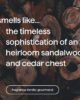 - Huele a la sofisticación atemporal de un baúl de sándalo y cedro tradicional.