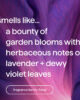 • Con notas de lavanda y hojas de violeta cubiertas de rocío, esta recarga llena la botella 2.8 veces